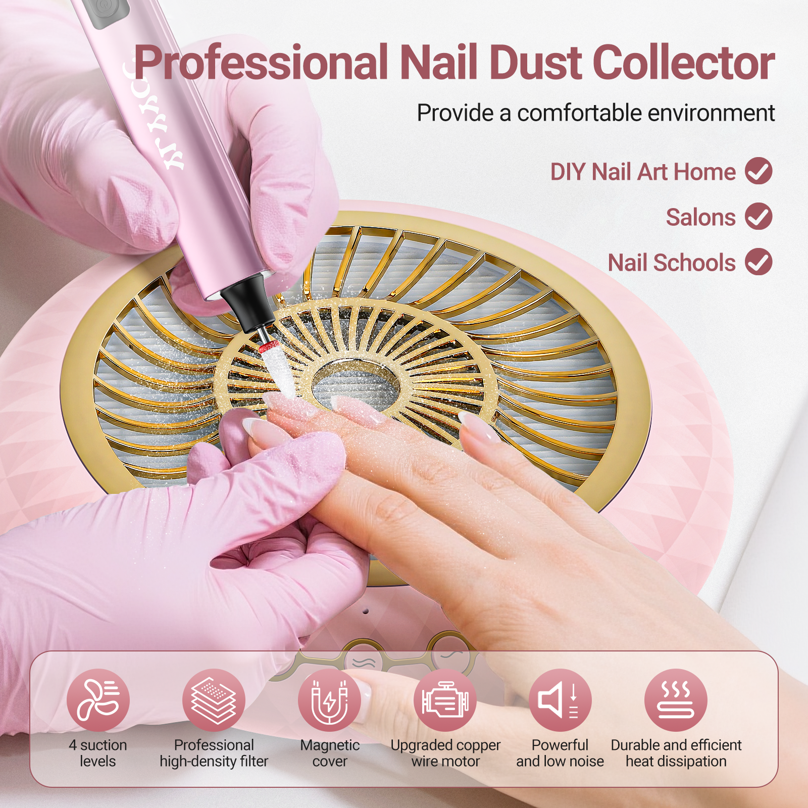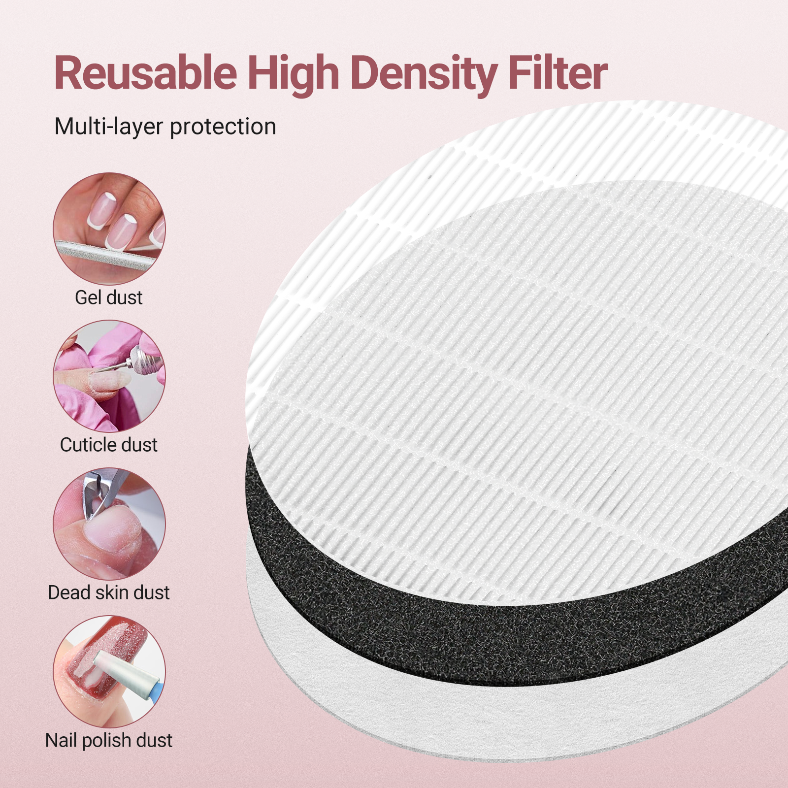 360° professional suction traps dust from all angles, paired with a reusable magnetic filter for easy cleaning. 4-speed quiet settings, anti-slip comfort design, and efficient heat dissipation—perfect for acrylic nail polishing, salons, homes, and beginners.